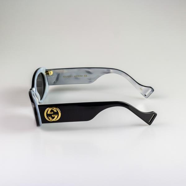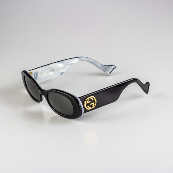 Montatura da sole Gucci 0517s 001 in acetato nero e interno madre perla.